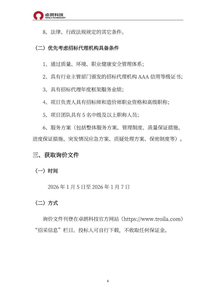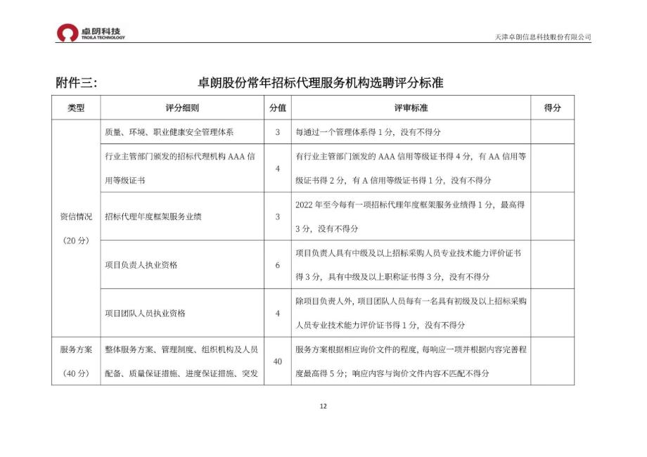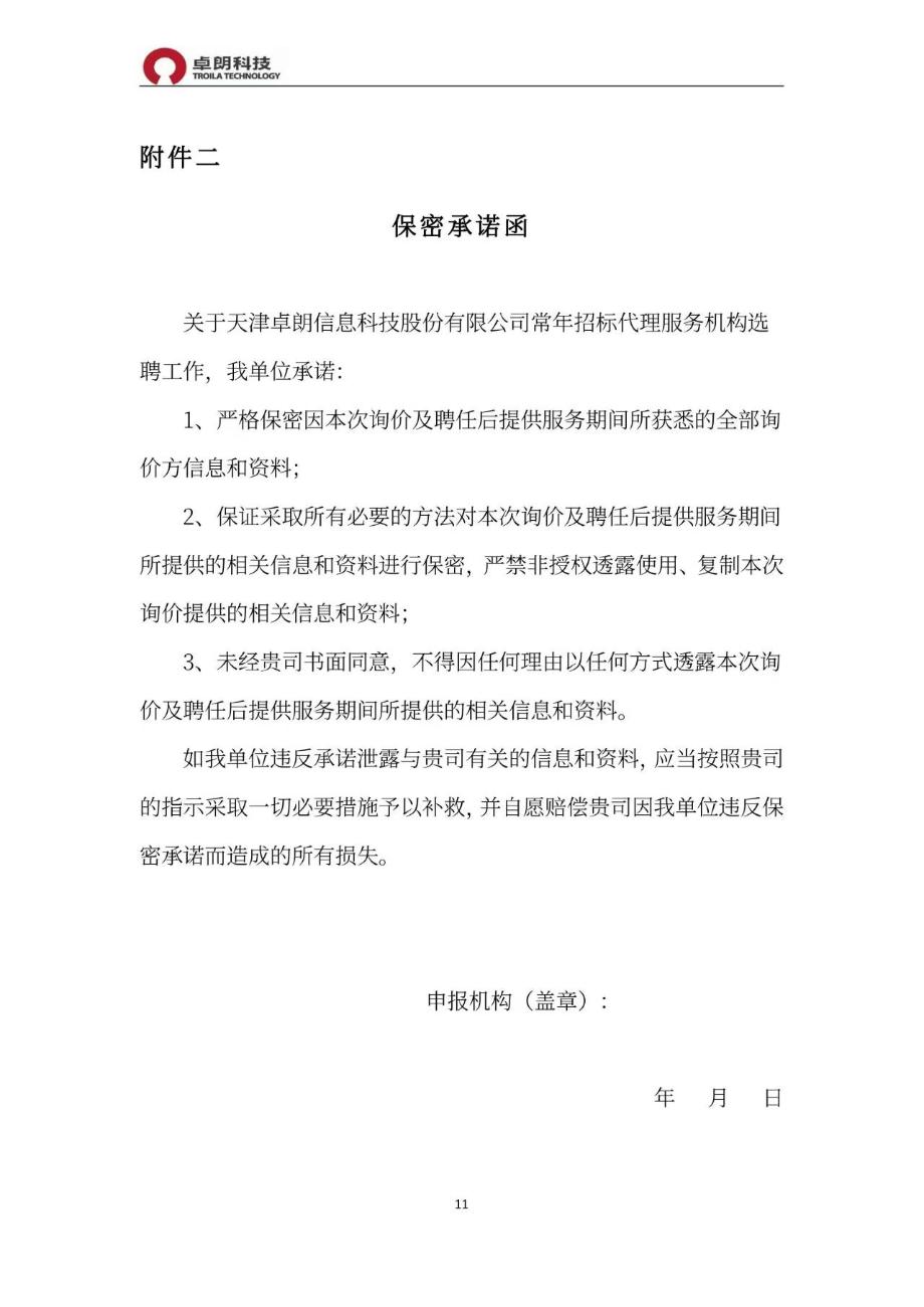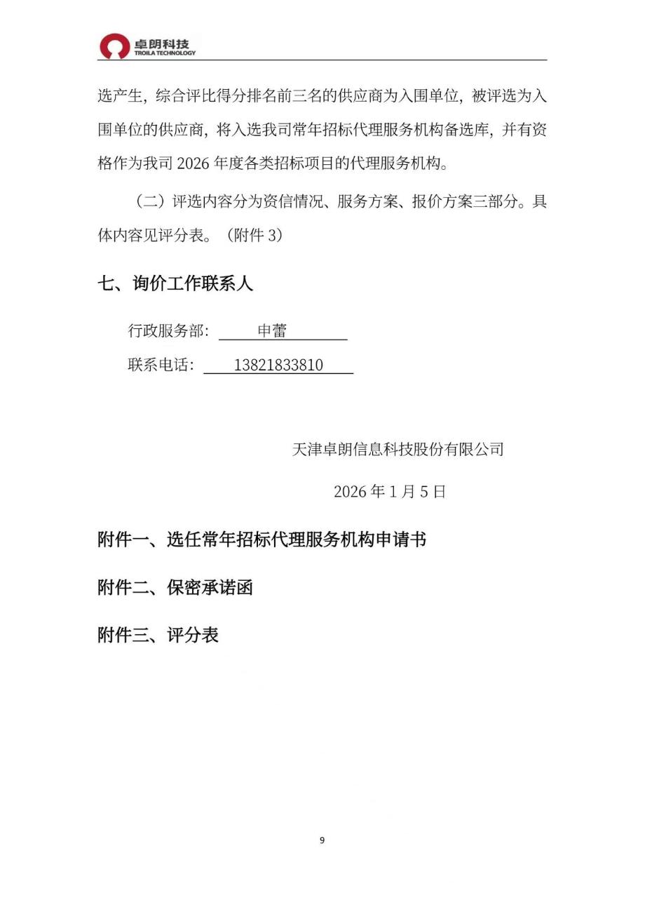 附件:天津卓朗信息科技股份有限公司常年招标代理服务机构选聘项目询价文件