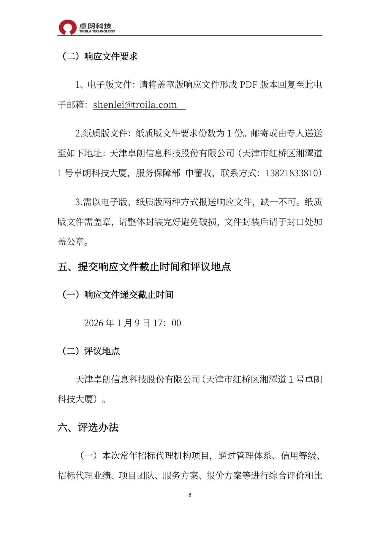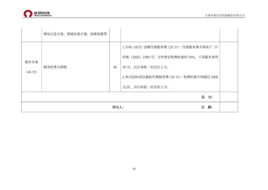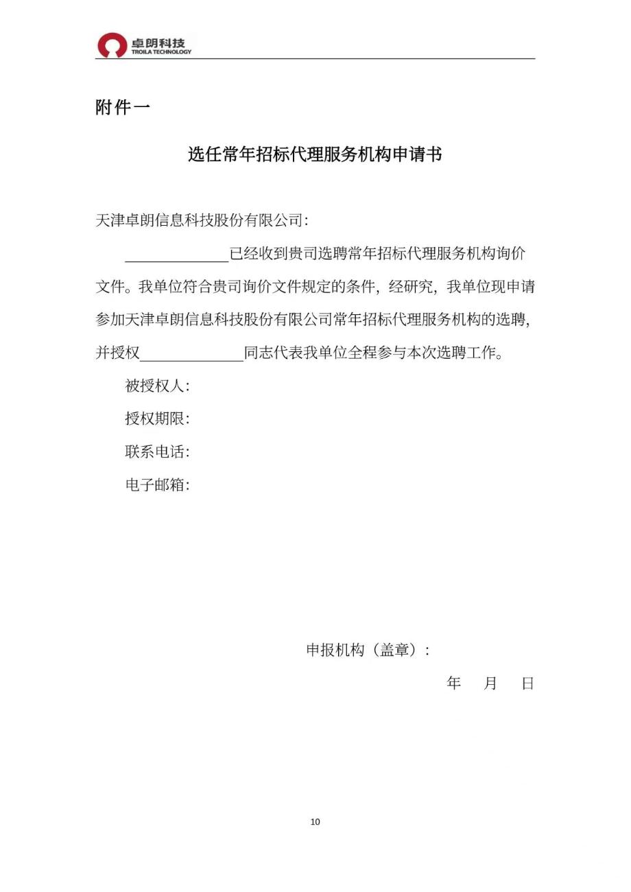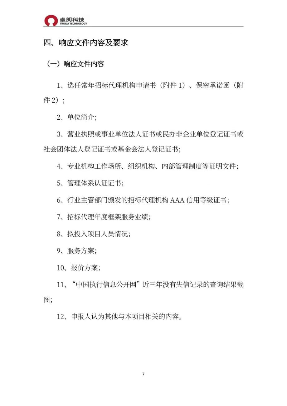 附件:天津卓朗信息科技股份有限公司常年招标代理服务机构选聘项目询价文件